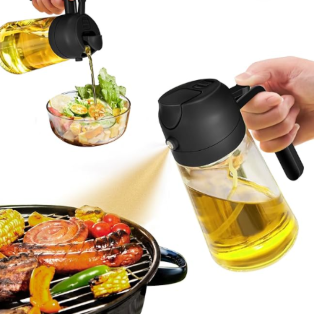 ✅ 2-in-1 Design – This premium glass bottle combines an oil sprayer and dispenser, making it versatile for various cooking needs.